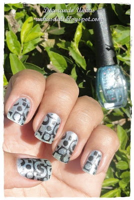 Usei alguns dias sem decoração e depois carimbei (KONAD M65) com o esmalte preto pra carimbo.