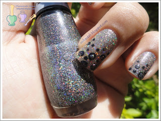 Esmaltei com o Latika Blueberry (2 camadas - muito fácil de esmaltar) e com o Impala Luna nas unhas que eu coloquei o adesivo.